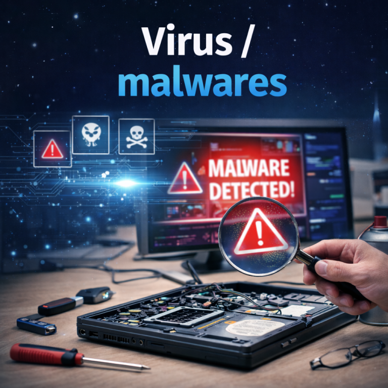 Nous accompagnons nos clients dans la résolution de leurs problèmes informatiques du quotidien : ordinateur lent, virus, installation de logiciels, changement de composants, connexion Internet ou conseils personnalisés.