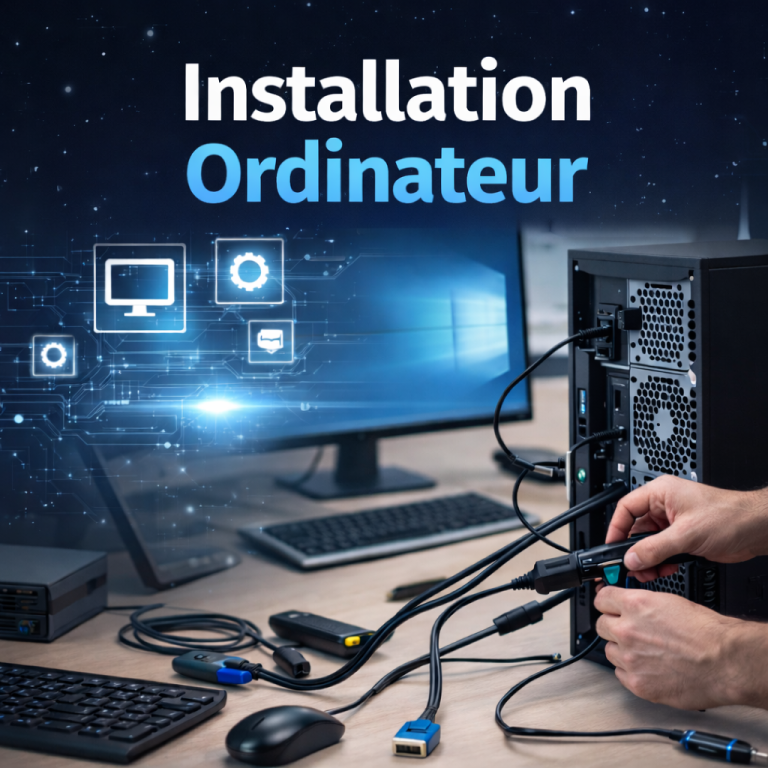 Mise en service complète d’un ordinateur avec configuration de base et vérifications essentielles.